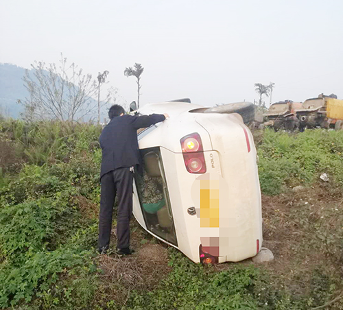 3月20日上午8時(shí)許,宜賓江安縣工業(yè)園區(qū)外,一輛轎車突然失控翻滾下公路。前去江安縣開會剛好路過此地的宜賓天原集團(tuán)海豐和銳黨委副書記、副總經(jīng)理、分工會主席馮應(yīng)乾,駕駛員曹勇和其他幾位過路的群眾立即對車上的5人進(jìn)行施救。